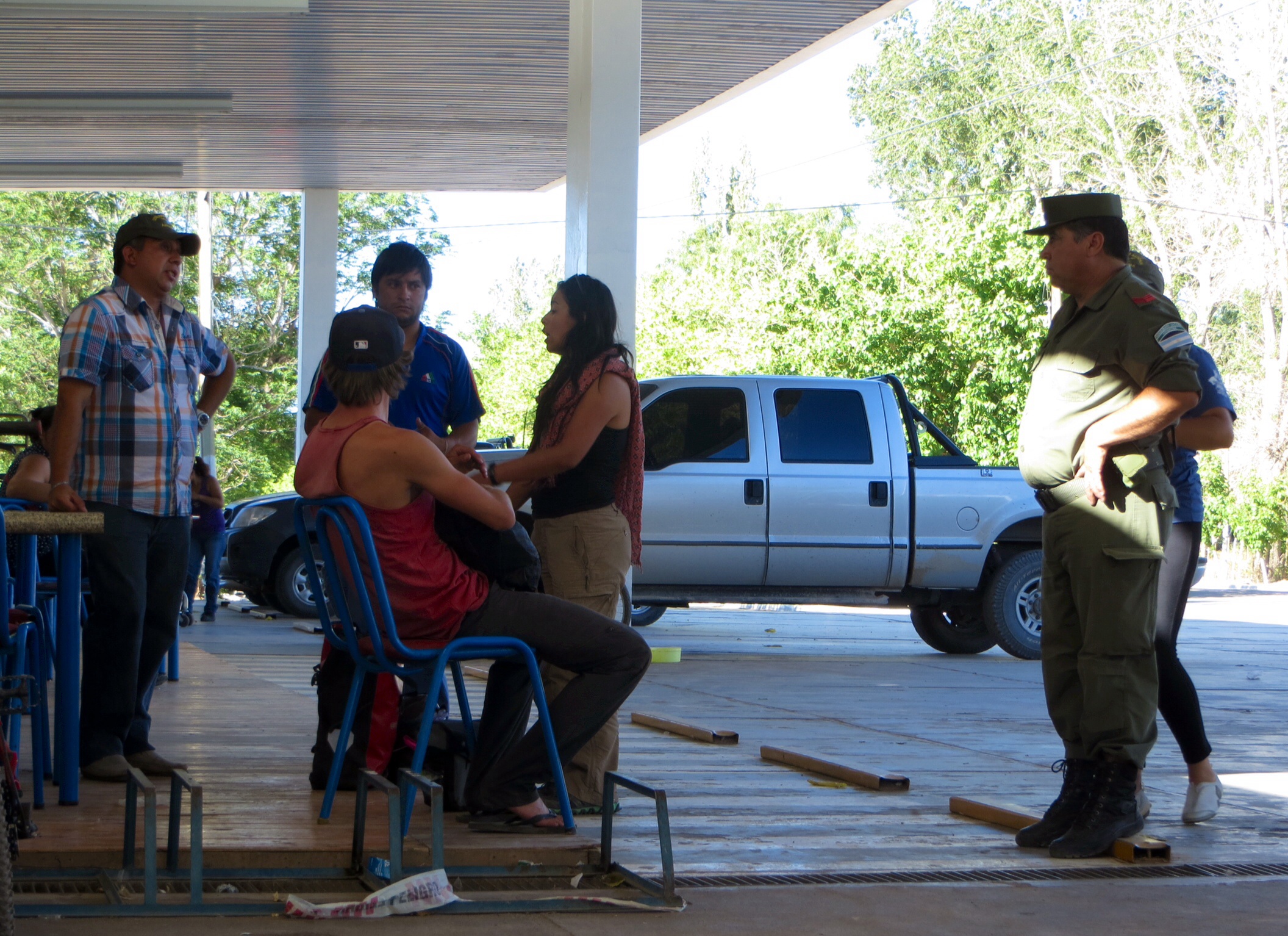 We had been chatting no longer than five minutes when we were approached a portly gendarme and three other folk. These three characters were wearing casual civilian clothes and by their demeanour I would have guessed one to be a local businessman, another perhaps a bank clerk and the third – a young woman – a primary school teacher. But the caps they were sporting told us otherwise – they were members of the Republica Argentina Gendarmeria Nacional. Wikipedia tells me that this a military organisation responsible for Argentina’s borders and also homeland security matters, such as drug trafficking and terrorism (which catagory did they think we fell into?). Fortunately both Lee and Heidi speak Spanish so I got a pretty good gist of the story they proceeded to tell us.