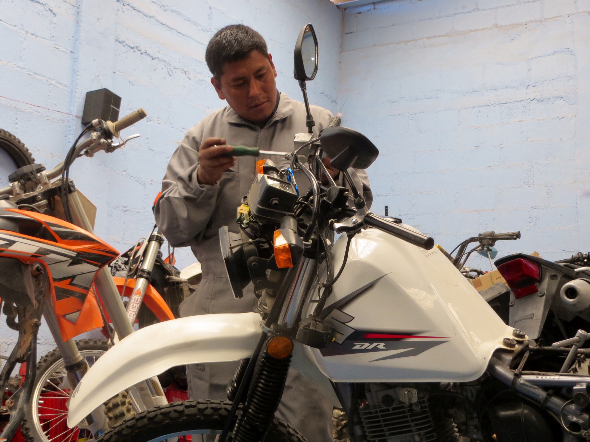 Today we are working on the moto with the help of the super laid back and helpful Edwin from the local garage, fitting protection, changing the oil and checking the motor. After the last few days, I’m not holding my breath – but we hope to be on the way to Bolivia tomorrow.