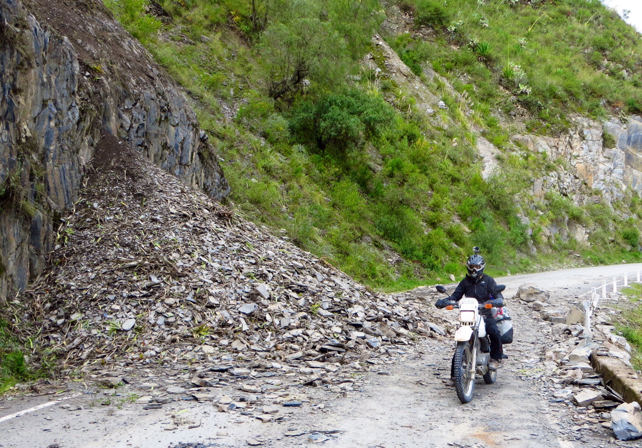 We awoke to the tail end of a night of persistent, heavy rain. The forecast predicted more, but soon after setting off the weather began to clear. Our new motoquero friends, Mario and Bacho, had told us the route to Huancayo was paved all the way. Indeed, they had previously ridden it on their cruisers. So I anticipated an uneventful and steady ride ahead of us. Wrong again.