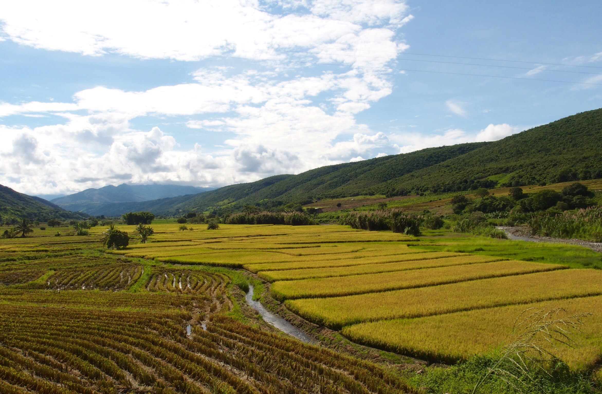 imageAfter leaving Chachapoyas a few days ago, the landscape changed dramatically. The route follows a spectacular gorge northwards, gradually losing nearly 2000 metres of altitude along the way, until the valley opens up into a wide plain and the mountains step back into the distance. The air becomes humid and tropical; and when it rains, it rains hard. Gently terraced fields filled with rice and other crops spread across the valley floor, and the hillsides are thick with coffee and cacao bushes. Here, the edge of the Amazon basin is only one valley away, and you can feel it. When you finally reach the border with Ecuador, demarcated by a mountain river, you find yourself deep in the hills, surrounded by jungle. It has a real ‘frontier’ feel about it.