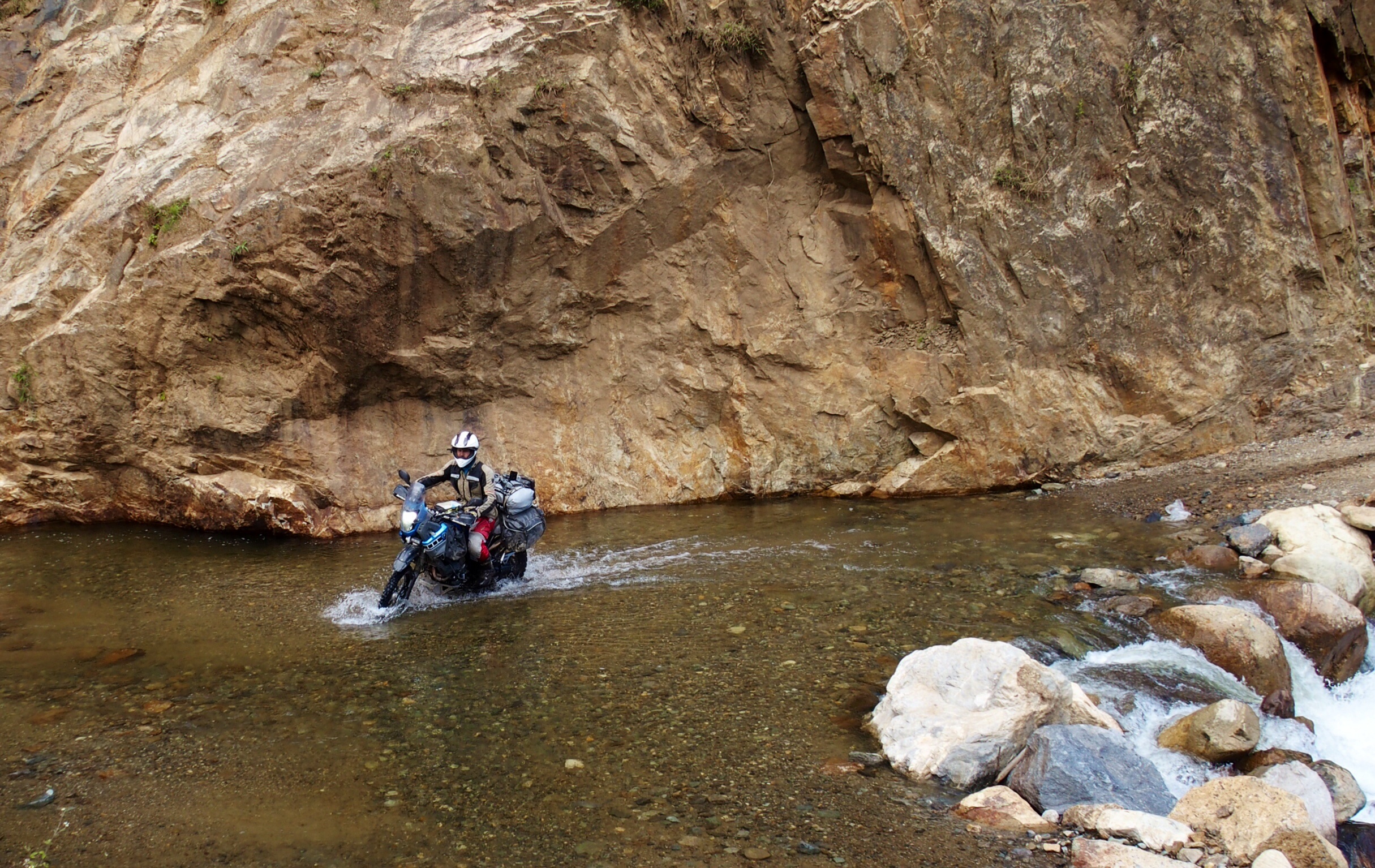 The reaction of the locals whenever we passed told me that very few gringos on motorbikes travelled these backroads. I didn’t know where we were going; the only way we could navigate the labyrinth of tracks was to frequently stop and ask the locals for directions. Every time we asked a distance to the next waypoint (here, distance is usually measured in time), estimates varied so much that I ignored them. And the itself riding was demanding; we hit a stretch with a lot of mud; then the surface of the track turned to a very slippy ‘micro gravel’; and later we encountered numerous fords. As if to emphasise my doctrine of ‘Light is Might’ which I wrote about in my last post, I dropped my moto several times, including losing the back end on a left-hander in the micro gravel. With a full tank of fuel and the bike lying on a slight downhill incline, I couldn’t pick her up without unloading some of my kit. That evening I had the toolkit out I as adjusted the triple clamp and re-aligned the forks.