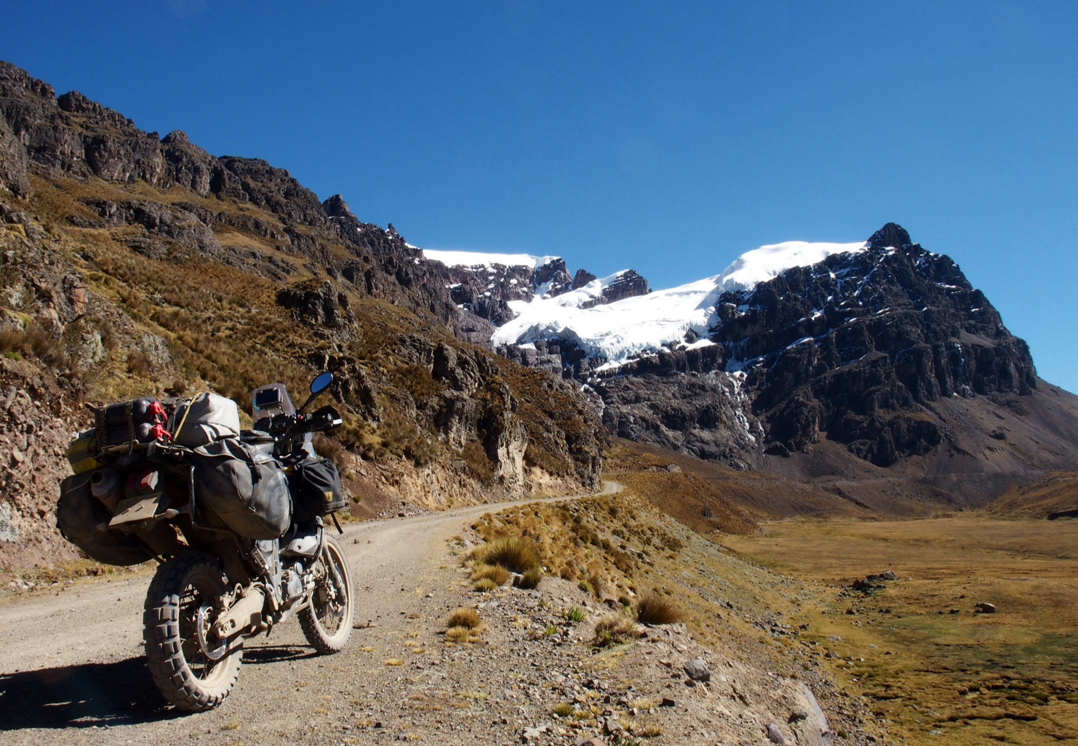 Time and time again I have crested a ridge or rounded a corner on my moto and been presented with a vista laying claim to be the most beautiful, the most breath-taking, the most stunning thus far encountered. Two in particular come to mind: a salt lake encircled by volcanoes near the Chile-Bolivia border and the Andean foothills falling away into the distance towards the desert around Piura in northern Peru. But as I crossed the southern edge of the Cordillera Blanca on a lonely dirt road after leaving Huaraz, the vistas I was rewarded with convinced me that here was, indeed, the best, the most breath-taking, the most stunning.
